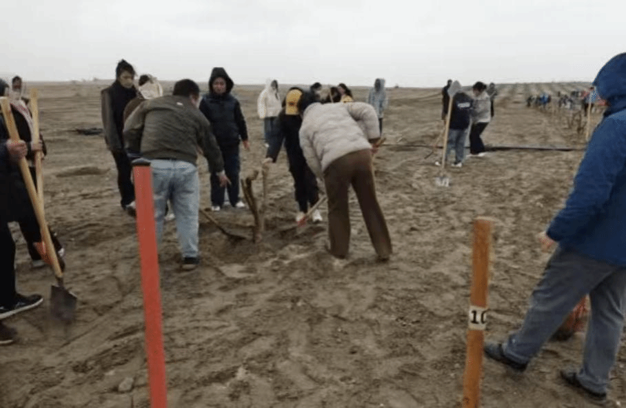 达玛沟乡地处昆仑山北麓、塔克拉玛干沙漠南缘,南接沙漠草滩、北临戈壁荒滩的地理环境,让当地长期面临土地沙化、风沙侵袭的生态挑战,植树造林、防沙治沙也成为全乡上下的重点工作。此次植树造林活动紧扣春季植绿黄金窗口期开展,乡党委组织干部职工、实习生与当地群众共同参与,在戈壁荒滩的指定区域种植梭梭、红柳、沙枣等耐旱固沙苗木。